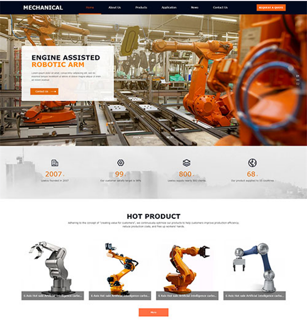 | H5响应式企业网站模板,自适应电脑、平板、手机、微信,整套模板预设了首页、关于我们、外贸产品展示、客户案例、新闻资讯、联系我们等页面,可通过后台新增页面,涵盖企业官网建设标准功能服务,适合于外贸站点企业网站建设。 |